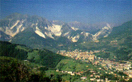 a small walled medieval town at the foot of the Apuane Alps,